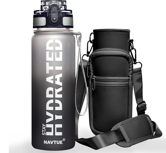 Water Bottle, 16OZ/ 500ML Sports Water Bottles with Time Marker Wide Mouth, Motivational and Leakproof Drink Bottle, BPA Free Tritan with Carry Strap for Gym Fitness Outdoor(1 Bottle)